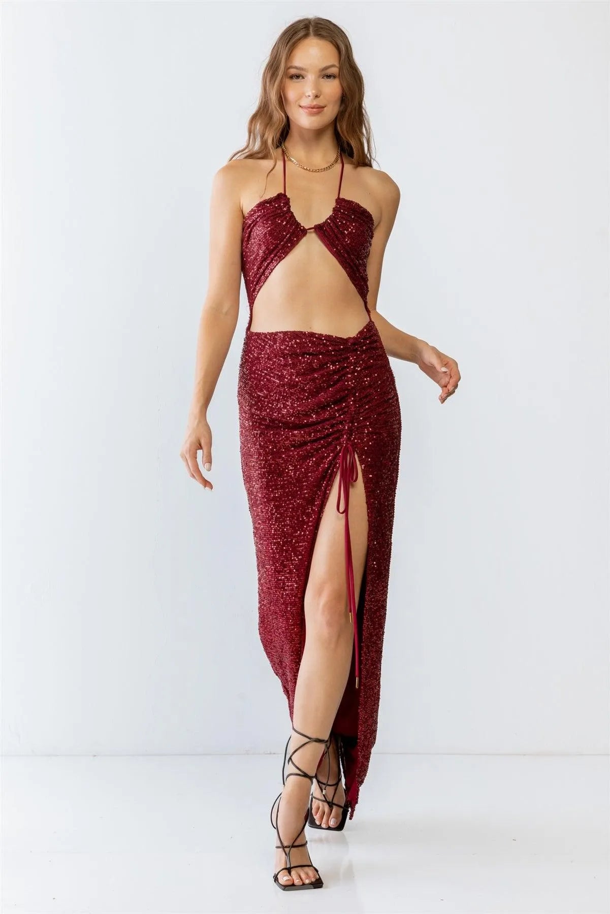 Floral Ruffle Criss-Cross Waist O-Ring Maxi Dress