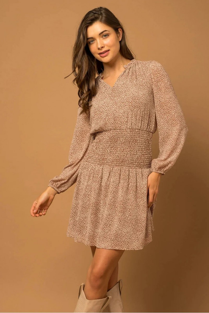 Enhance your wardrobe with this charming Floral V-Neck Smocking Waist Mini Dress. The carefully desi.....