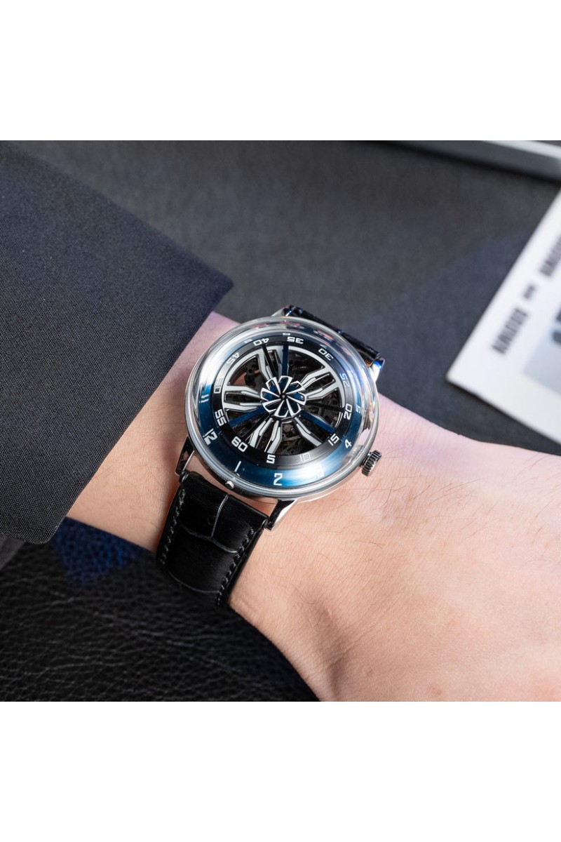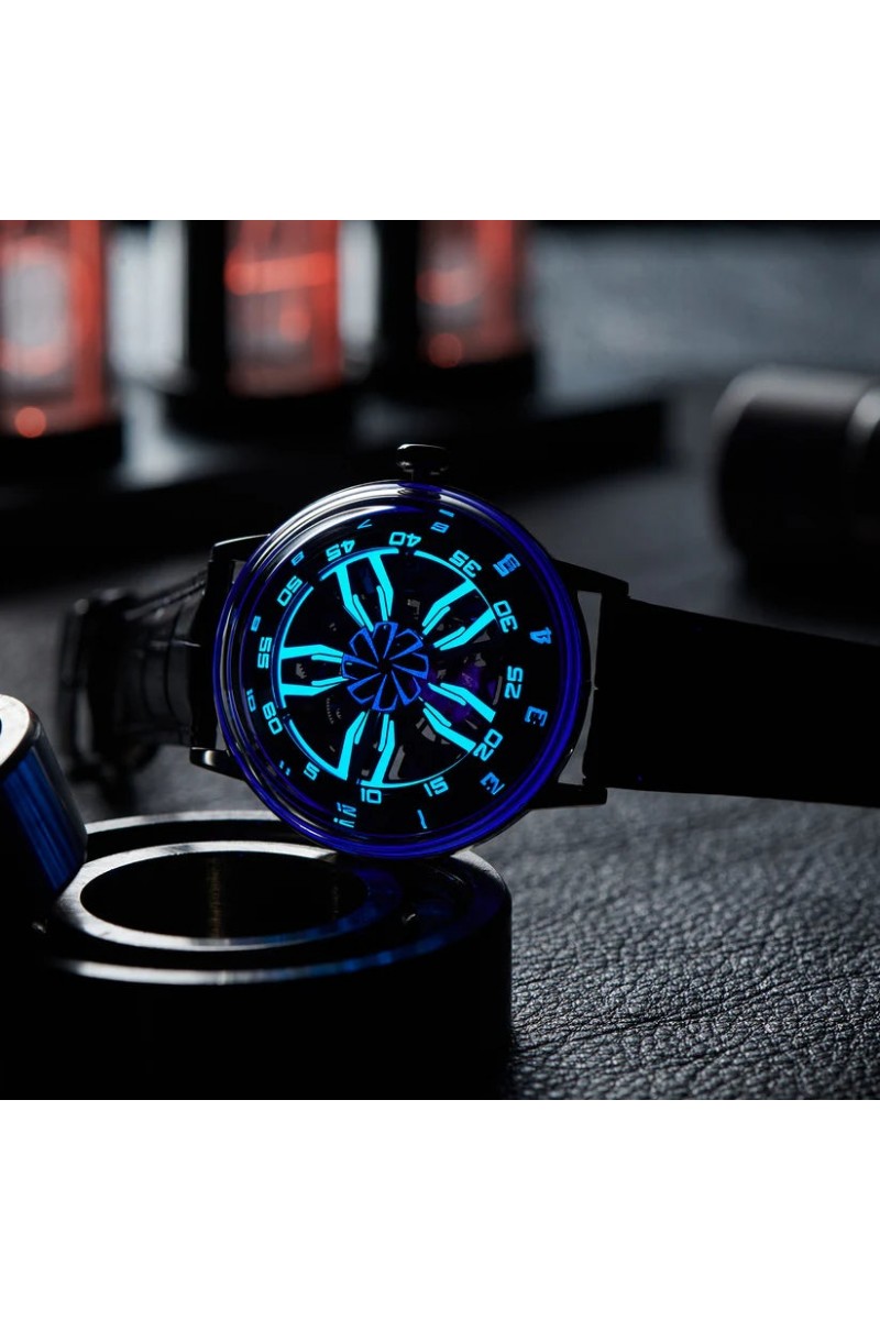 Dial:Blue Skeleton & Unique Supercar Alloy Wheels Dial, And Hands With Luminous Paint.