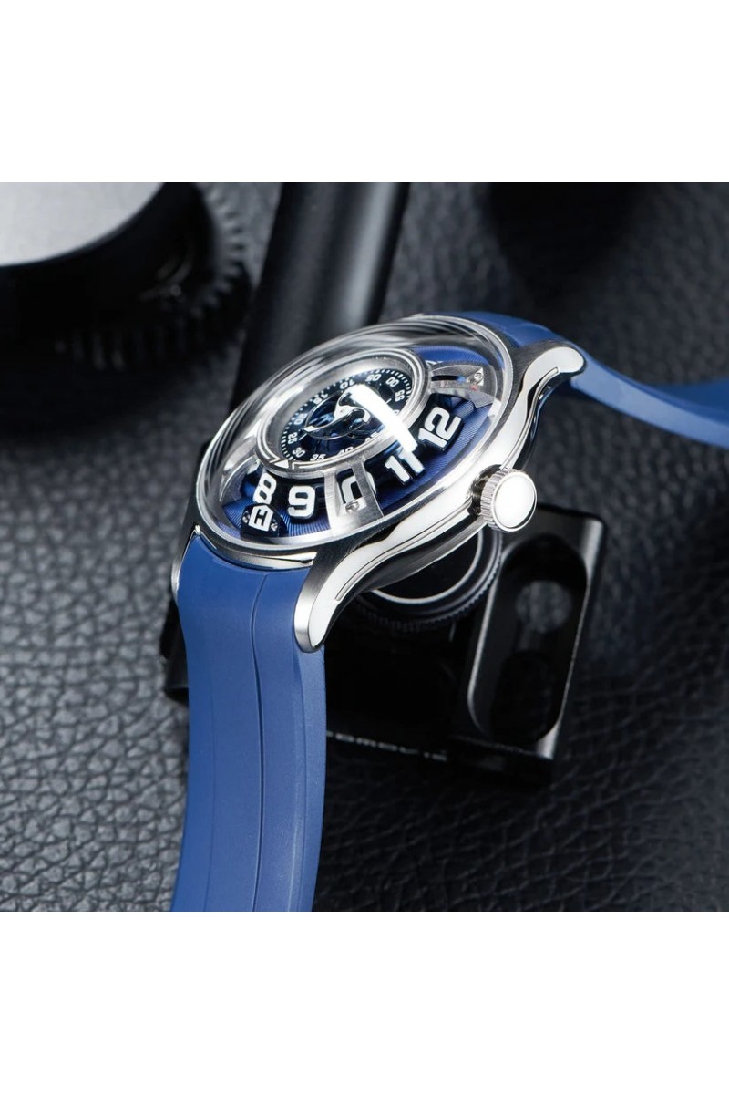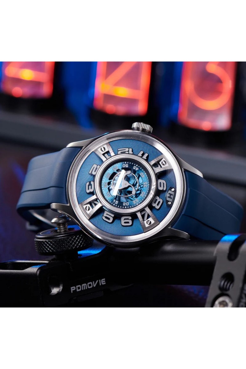 Dial:Ghost Blue Gradient Dial, Unique Mechanical Rotating Indices And Hands With Luminescent Coating